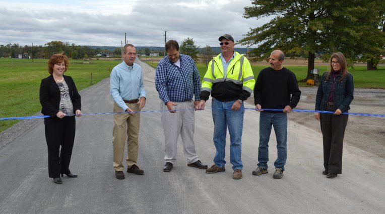 On Thursday October 1st , Brent Risser of Risser Grain cut a ribbon stretched across a newly paved section of Beaver Run Road which leads into Risser’s Turbotville location. The transportation project was jointly funded by local and state government along with private dollars. In attendance for the celebratory event were Senator John Gordner, who was instrumental in the initiation of the project, Representative Lynda Schlegel-Culver, and the Northumberland County Commissioners. Neighbors and well-wishers from the agricultural industry also participated in the festivities.